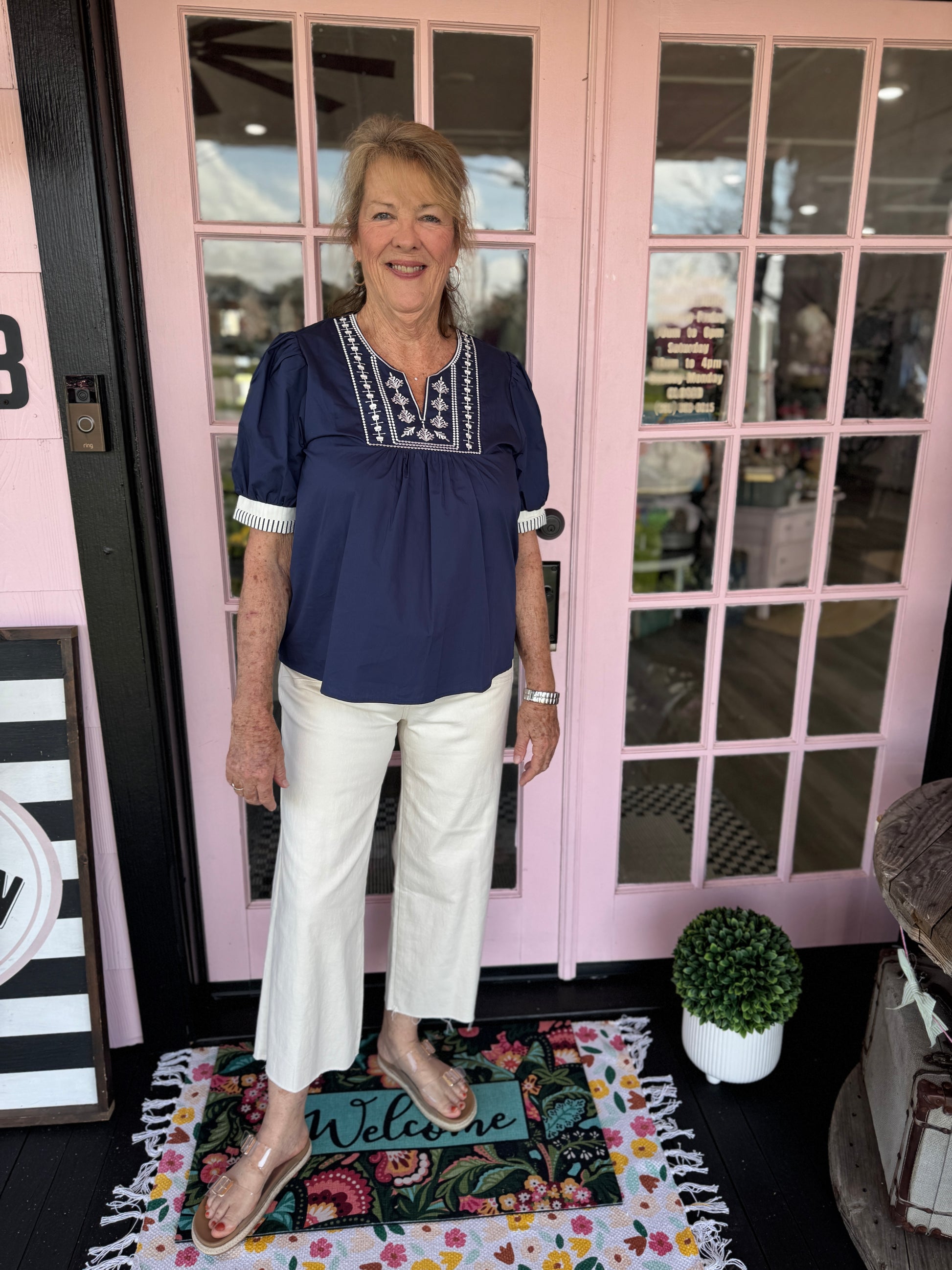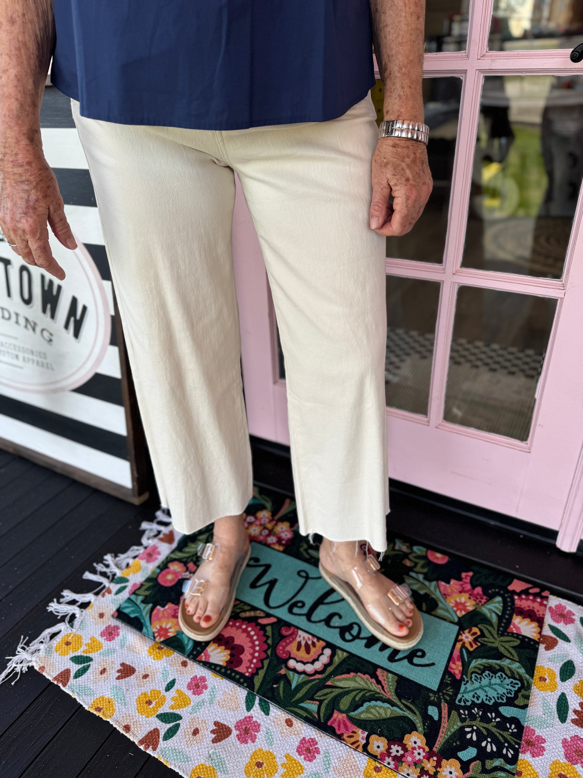 Details: Step into effortless style with the Annette Pants—your new go-to for looking put-together without trying too hard. These cream denim beauties rock a flattering high-rise fit and straight leg cut that works with basically everything in your closet. Made from buttery-soft denim, they're as comfy as your favorite jeans but way more chic. Button and zip closure keeps everything secure, while functional pockets mean you can actually carry your stuff. Timeless, versatile, and ready for whatever your day throws at you.